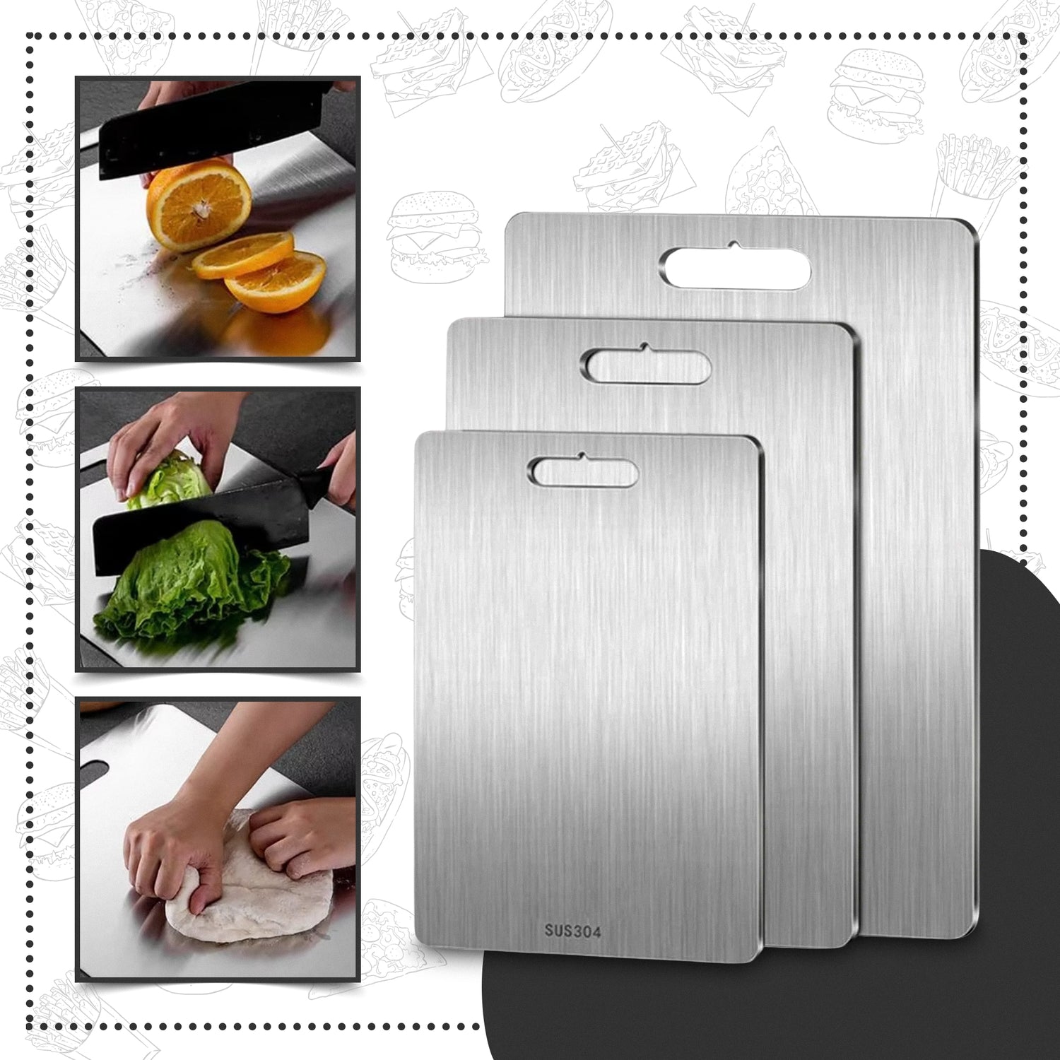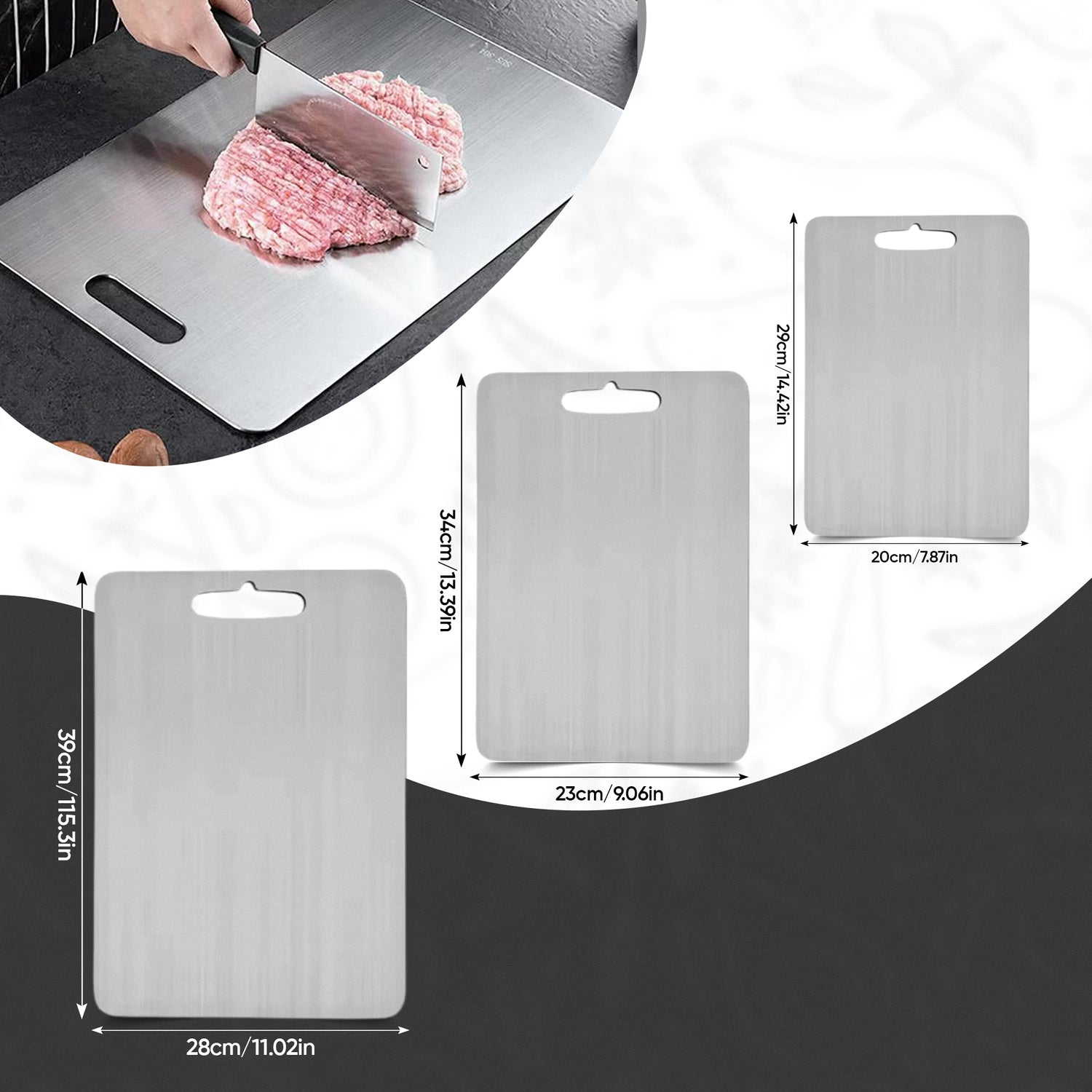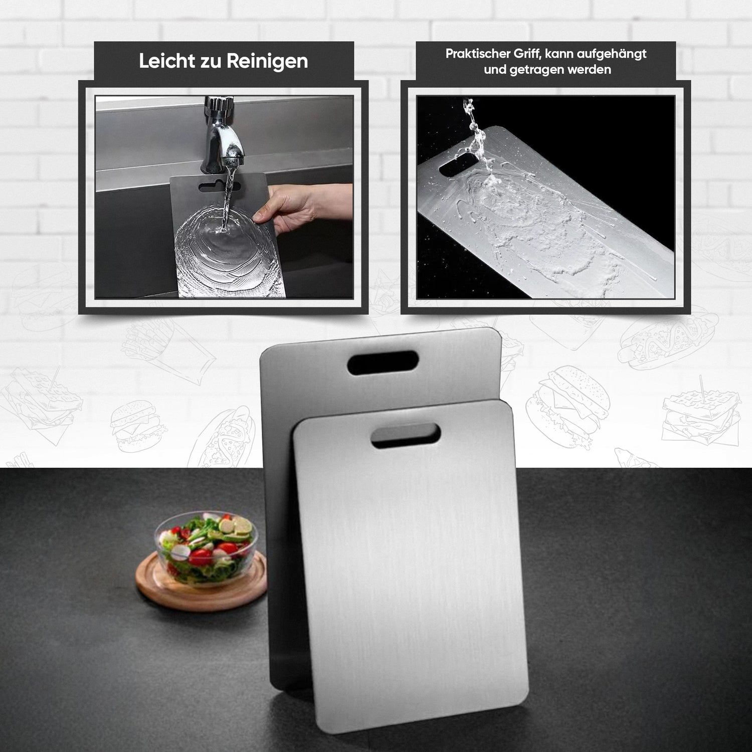 Mit dem doppelseitigen Titan-Schneidebrett aus Edelstahl holen Sie sich das perfekte Multitalent für Ihre Küche ins Haus!